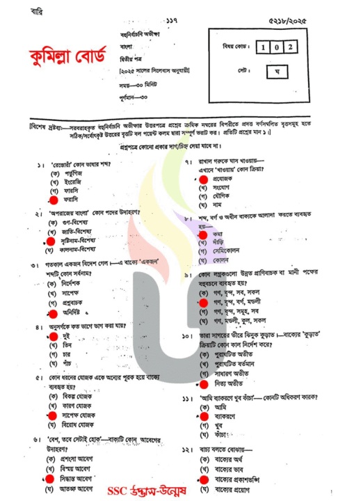 Comilla Board: SSC 2025 Bangla 2nd MCQ Solution