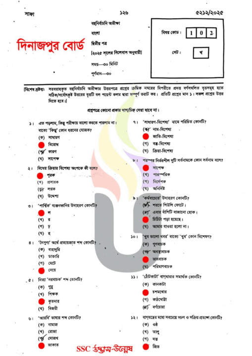 Dinajpur Board: SSC 2025 Bangla 2nd MCQ Solution