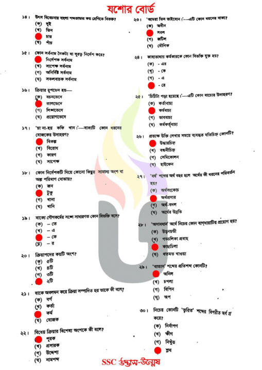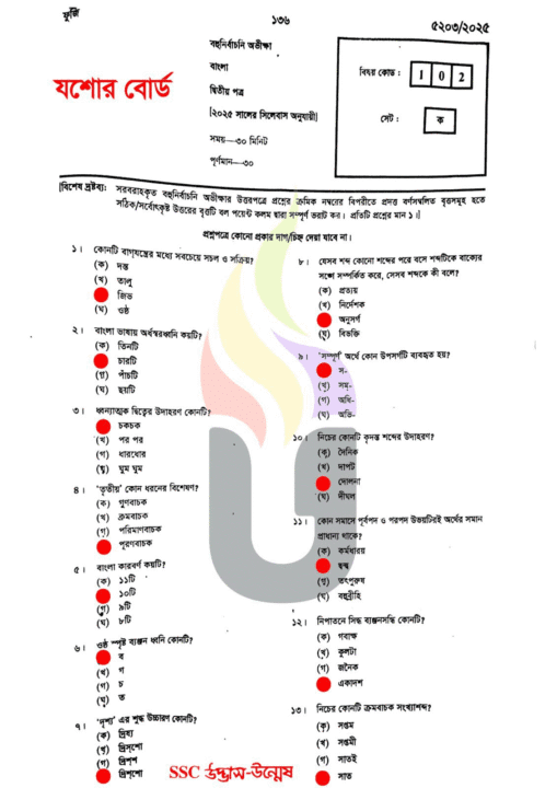 Jessore Board: SSC 2025 Bangla 2nd MCQ Solution
