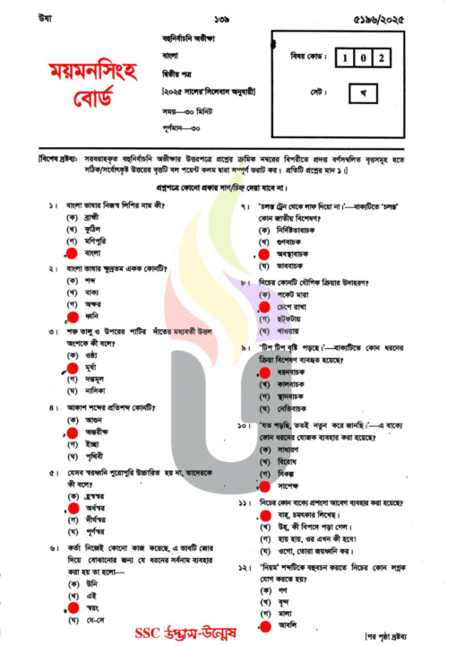 Mymensingh Board: SSC 2025 Bangla 2nd MCQ Solution