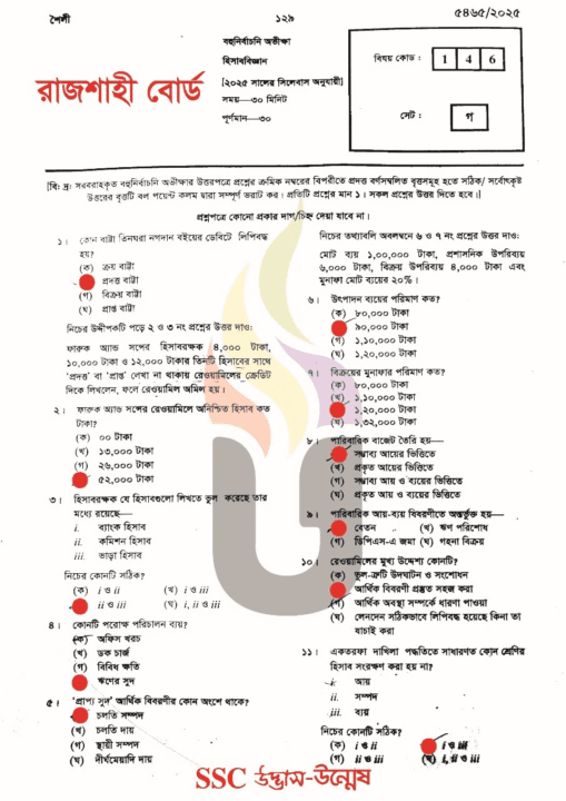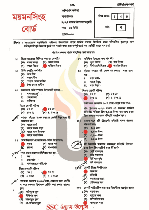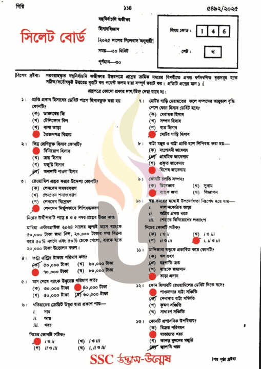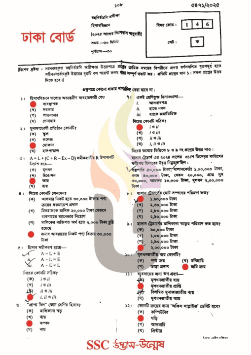 SSC 2025 Accounting MCQ Solution All Board – নিচে দেখুন