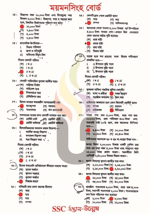 ময়মনসিংহ বোর্ড হিসাববিজ্ঞান নৈব্যক্তিক সমাধান