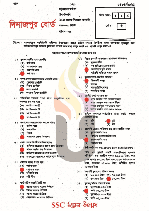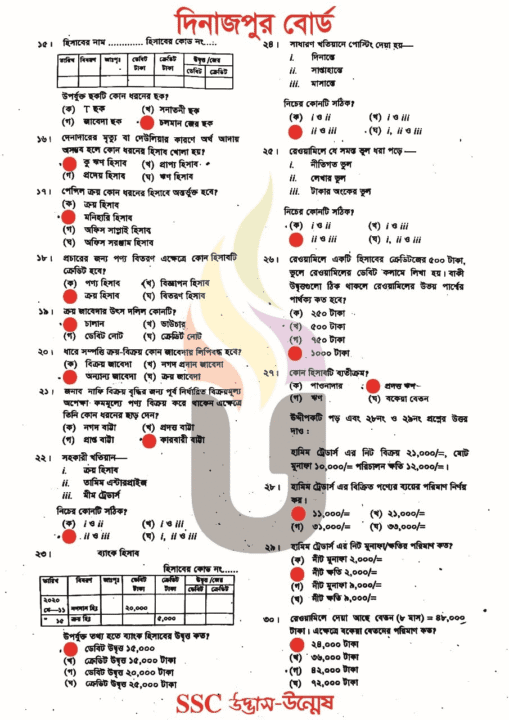 দিনাজপুর বোর্ড হিসাববিজ্ঞান নৈব্যক্তিক সমাধান