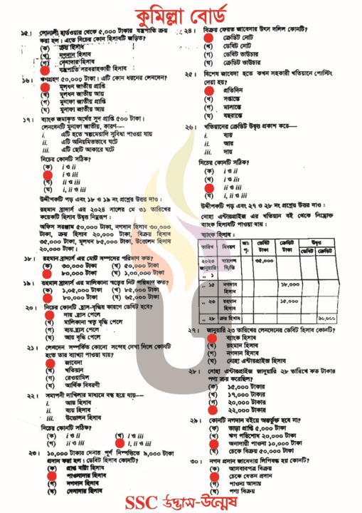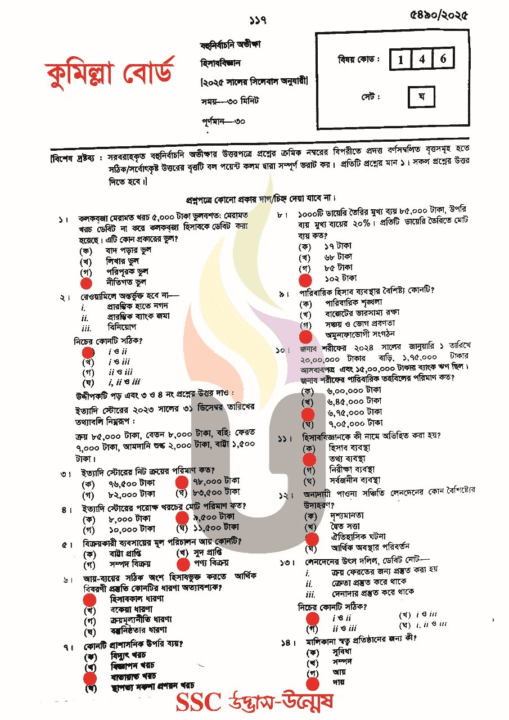 কুমিল্লা বোর্ড হিসাববিজ্ঞান নৈব্যক্তিক সমাধান