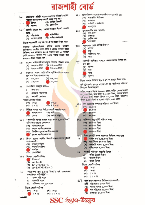 রাজশাহী বোর্ড হিসাববিজ্ঞান নৈব্যক্তিক সমাধান