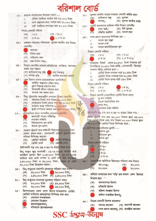 বরিশাল বোর্ড হিসাববিজ্ঞান নৈব্যক্তিক সমাধান