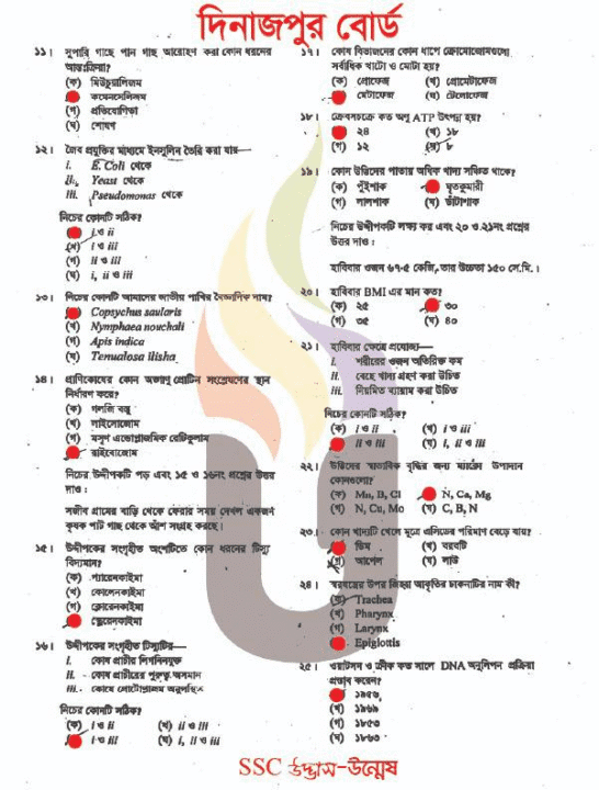 দিনাজপুর বোর্ড জীববিজ্ঞান নৈব্যক্তিক সমাধান