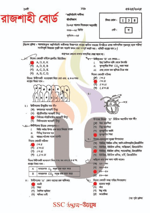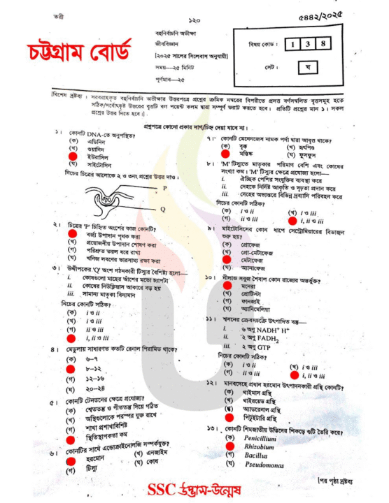 SSC 2025 Biology MCQ Solution All Board – নিচে দেখুন