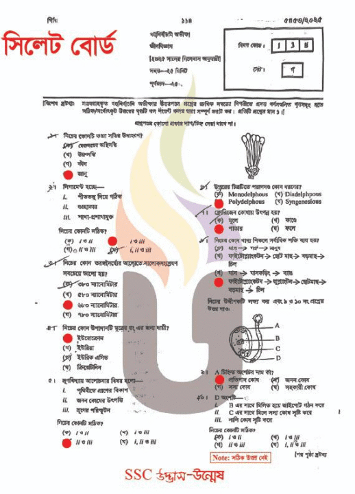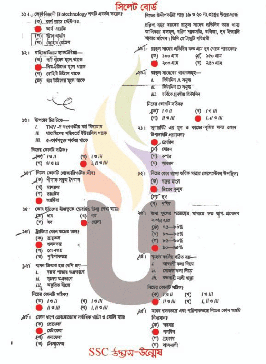 সিলেট বোর্ড জীববিজ্ঞান নৈব্যক্তিক সমাধান
