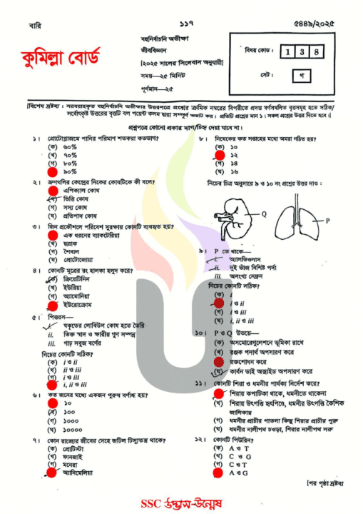 কুমিল্লা বোর্ড জীববিজ্ঞান নৈব্যক্তিক সমাধান