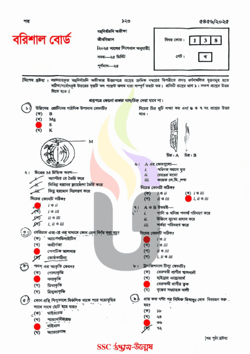 বরিশাল বোর্ড জীববিজ্ঞান নৈব্যক্তিক সমাধান